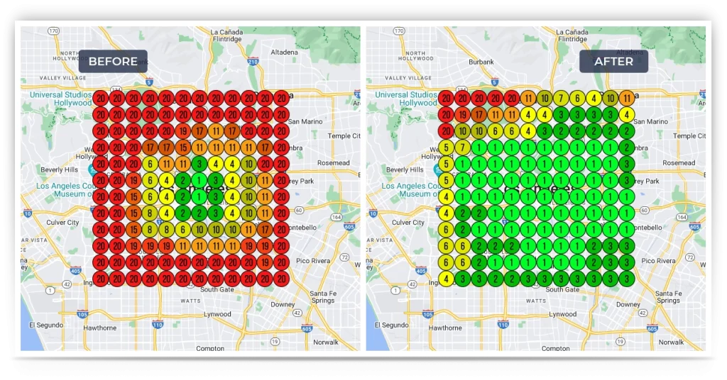 Nous identifions les zones de votre ville où vos concurrents sont vulnérables — et nous positionnons votre fiche pour capturer leurs clients.